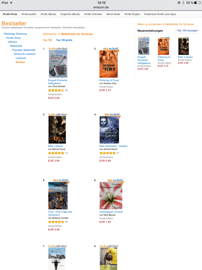 Die deutsche Version meiner Weihnachtskurzgeschichte ist Freitag erschienen und es ist das Unvorstellbare passiert: Sie wurde ein Nummer Eins Bestseller. Meine sexy Kurzgeschichte trägt jetzt das Amazon Bestseller Schildchen.
